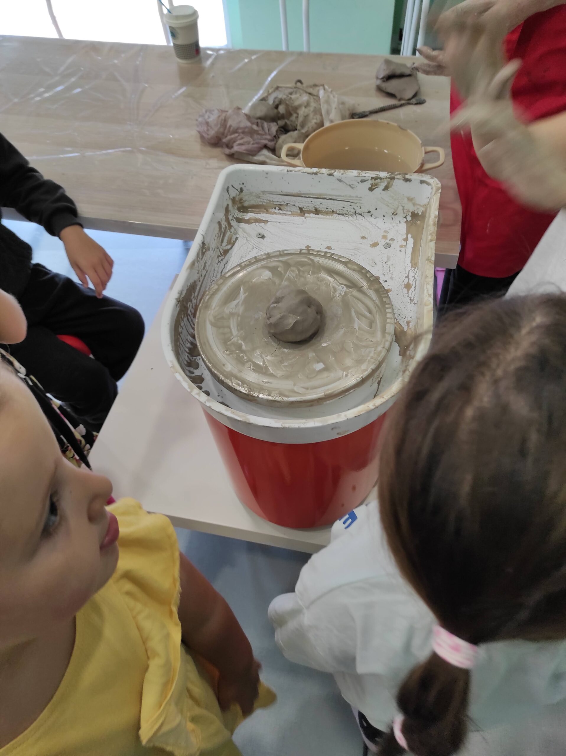 Επιπλέον, το εργαστήρι μας διαθέτει τροχό κεραμικής, δίνοντας στα παιδιά την ευκαιρία να εξοικειωθούν με τις τρεις διαστάσεις του χώρου. Μαθαίνουν πώς να δημιουργούν χρηστικά και διακοσμητικά αντικείμενα, δουλεύοντας με διαφορετικές τεχνικές όπως η πλάση, το καλούπι και η γλυπτική. Οι δεξιότητες που αναπτύσσουν μέσα από την πηλοπλαστική – κεραμική ενισχύουν την αυτοπεποίθησή τους και τους δίνουν την ελευθερία να εκφράσουν τη φαντασία τους.
